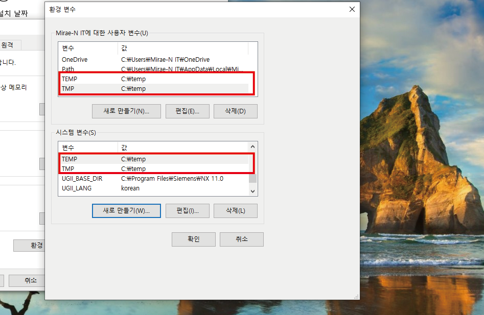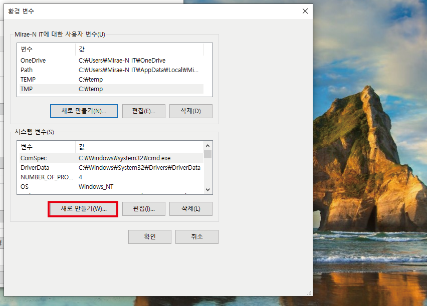 사진과 동일하게 사용자 변수와 시스템변수 모두