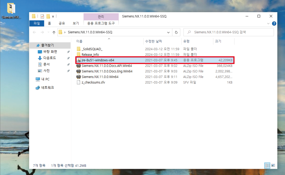 UG NX 설치파일로 이동하여,