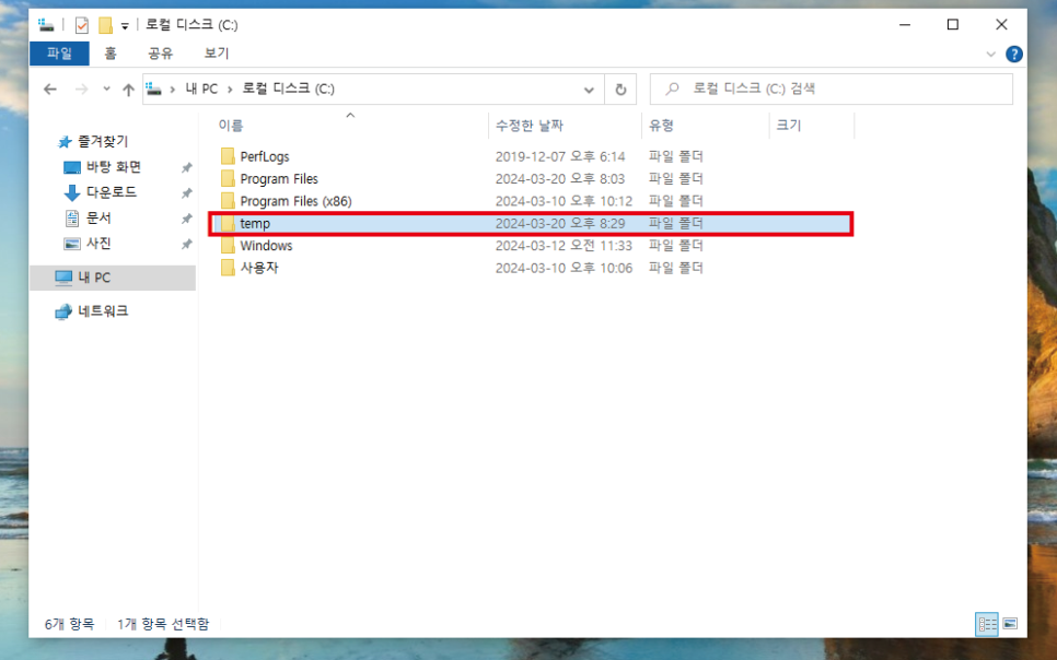 'C:\temp' 로 지정해 줍니다.