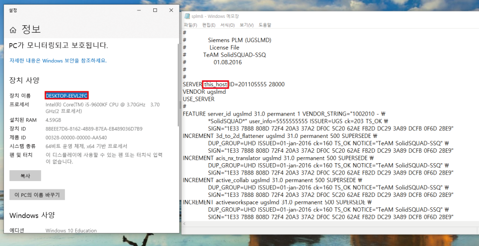 라이센스 서버 파일을 수정해야 합니다.