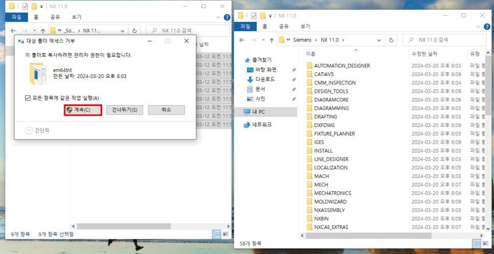 UG NX 11은 설치시 에러발생률이 상당히