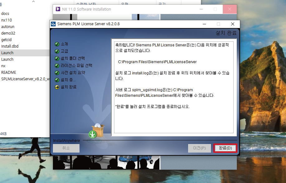 일단 UG NX 11 프로그램 설치는 끝났습니다.