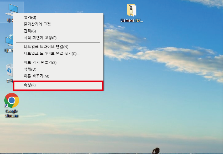 내PC - 속성 클릭합니다.