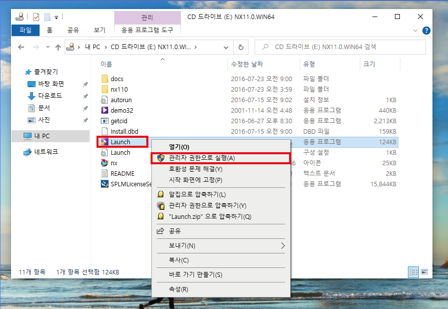 'Launch' 를 관리자 권한으로 실행시켜