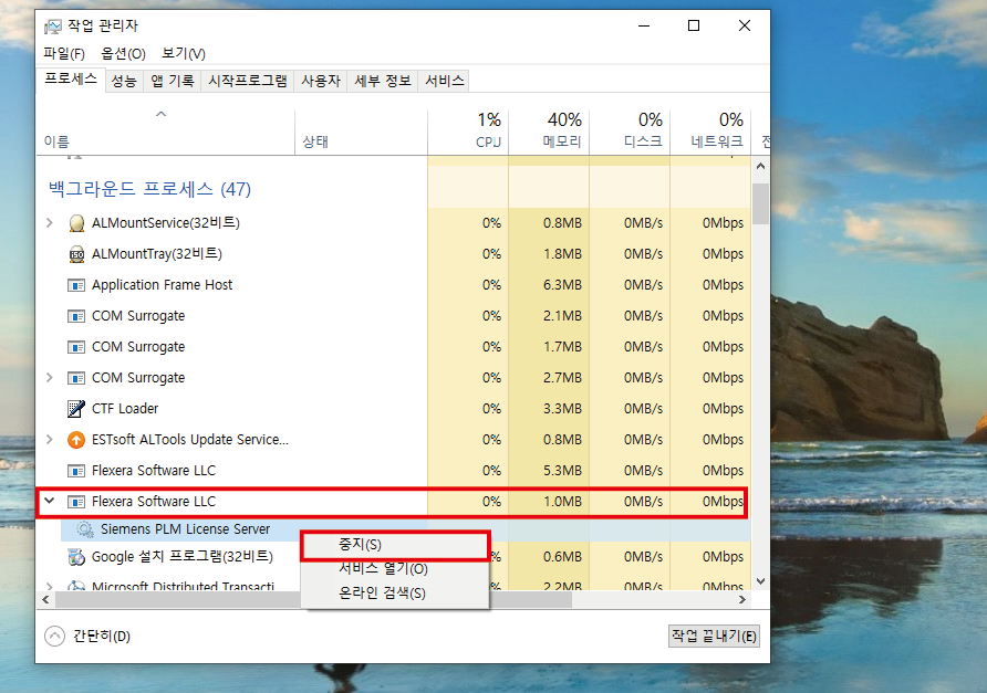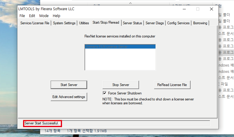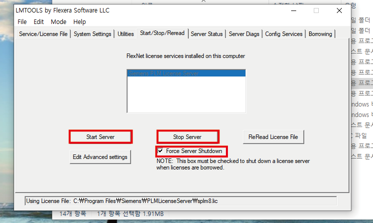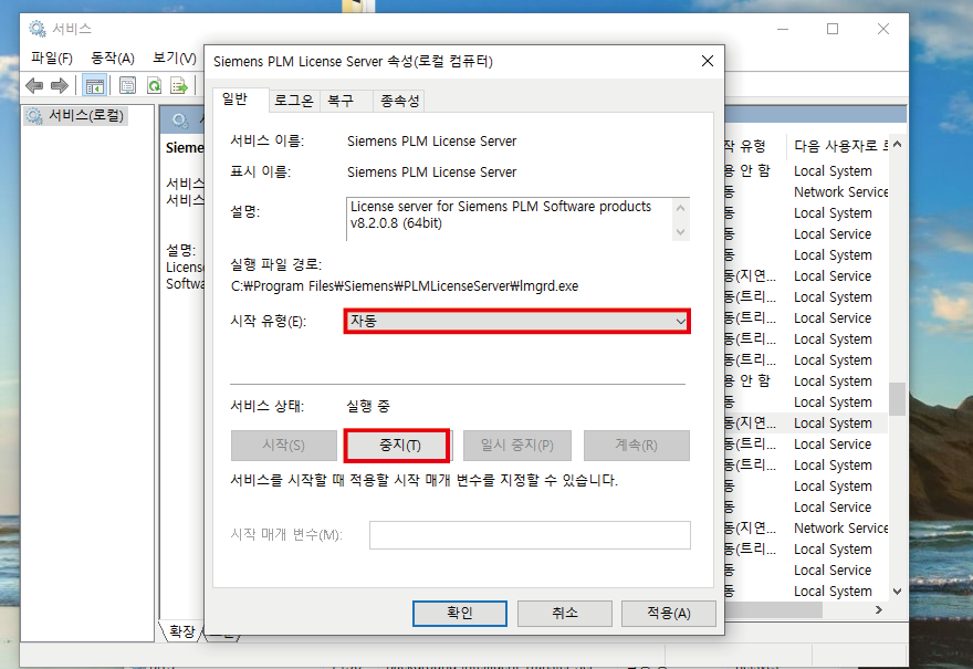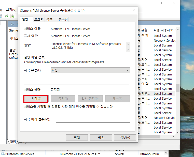 위와 같이, 라이선스 서버장치가 중지되었거나~~ 라고
