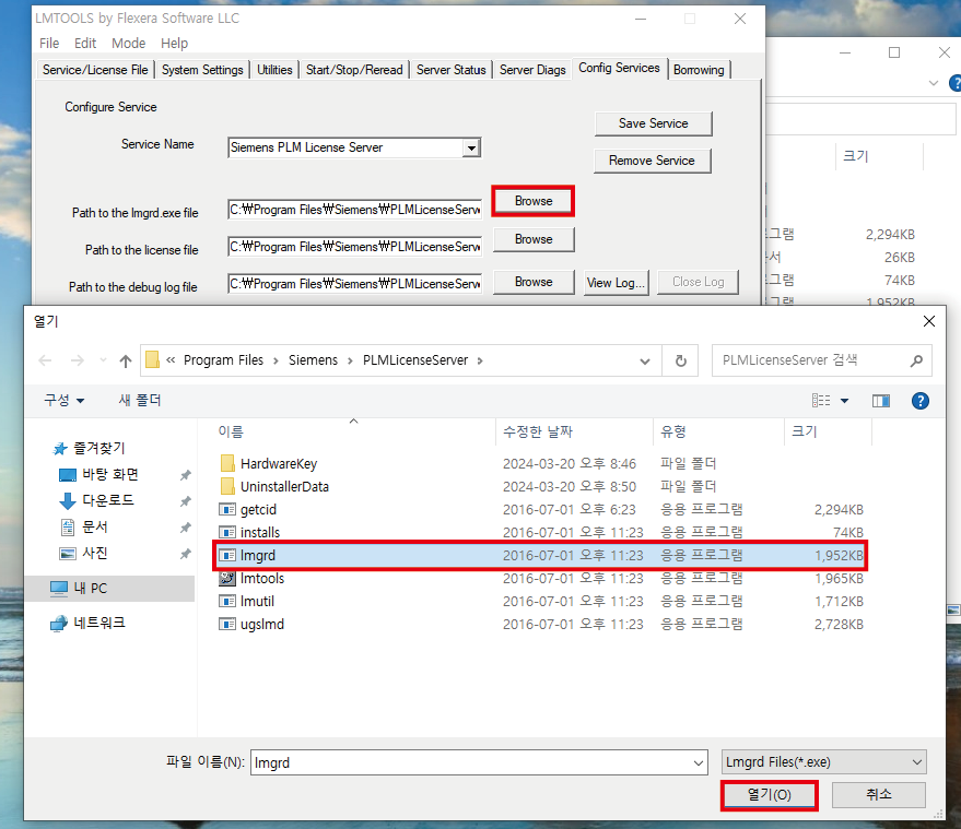 첫 번째 패치파일은 'lmgrd' 파일 을 선택하고
