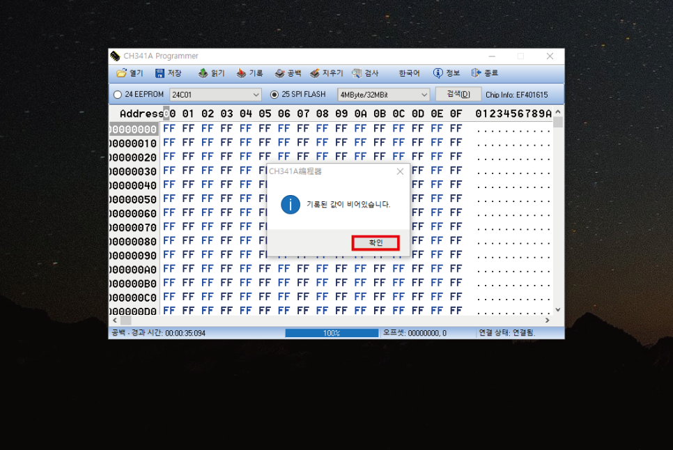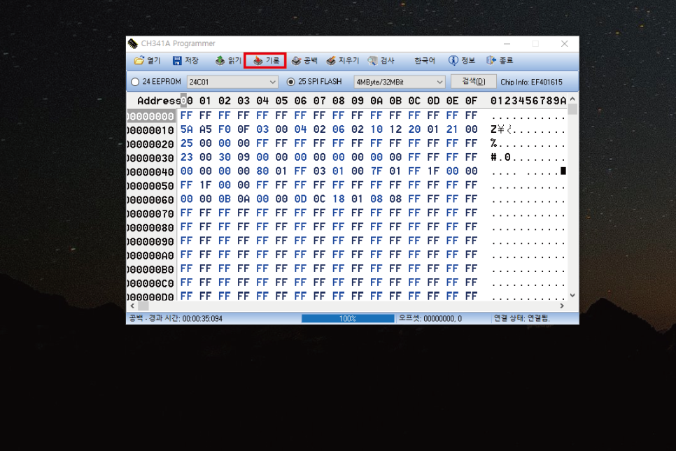 버전은 CH341A programmer v1.31(1.4) (CH341AFree)