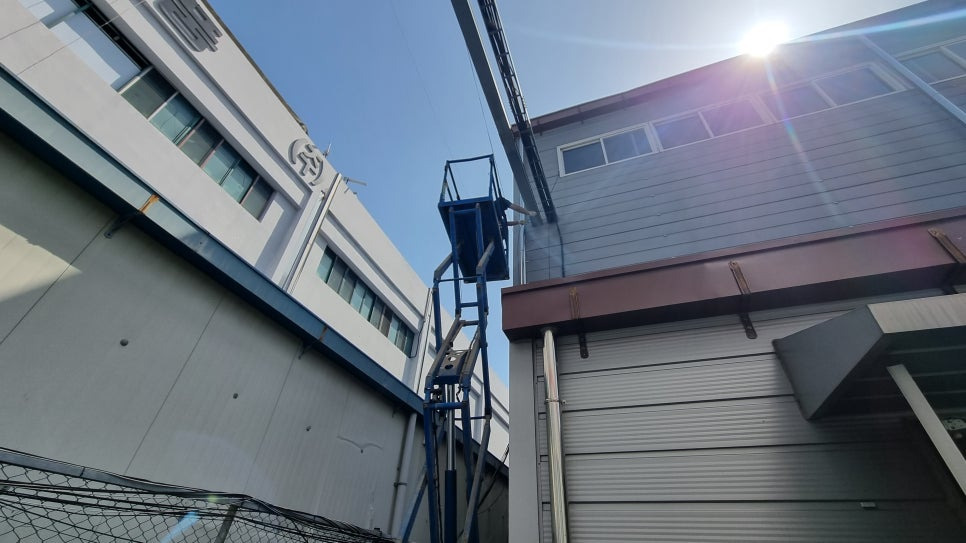 사무실과 공장사이에 케이블트레이가