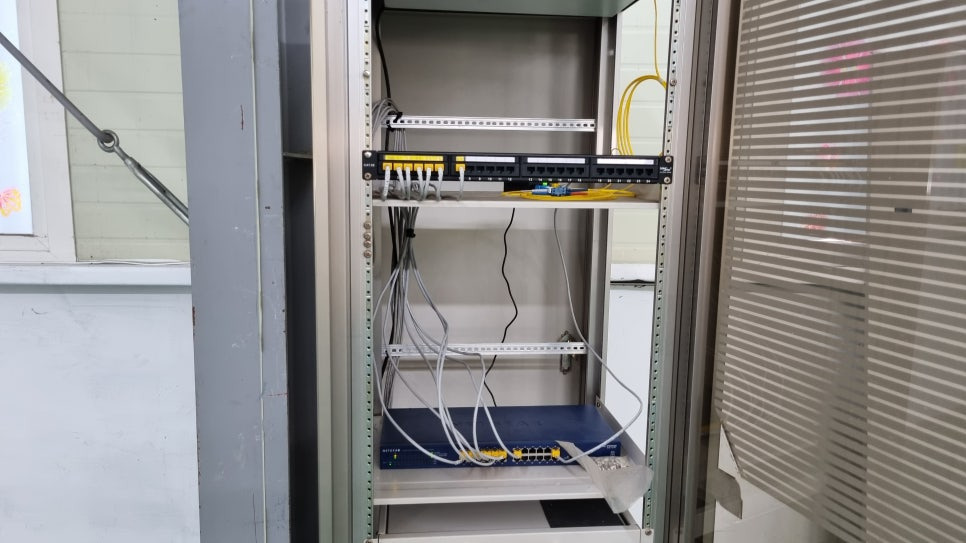 노란색 케이블 4가닥은 서버룸에서