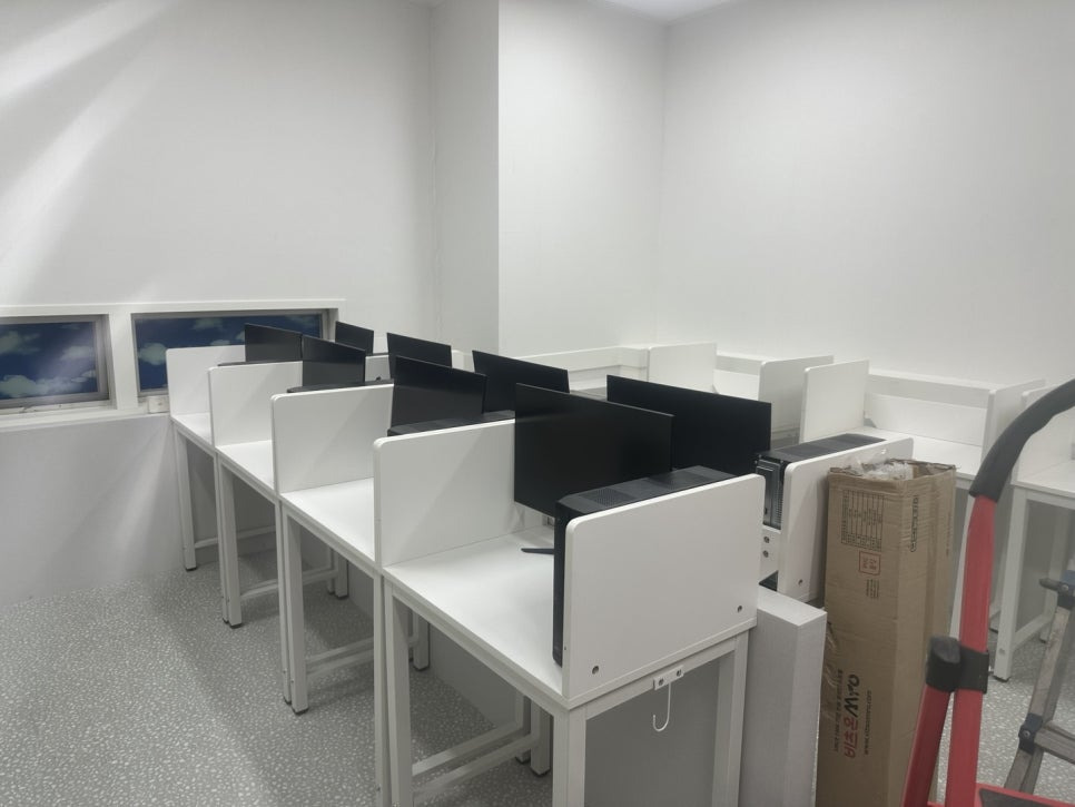 각 자리마다 컴퓨터와 모니터를 설치합니다.