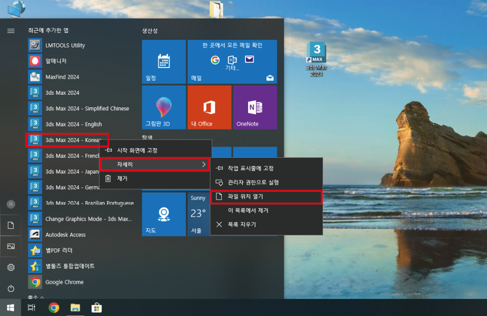 3ds Max 2024 -Korean 아이콘이 있습니다.