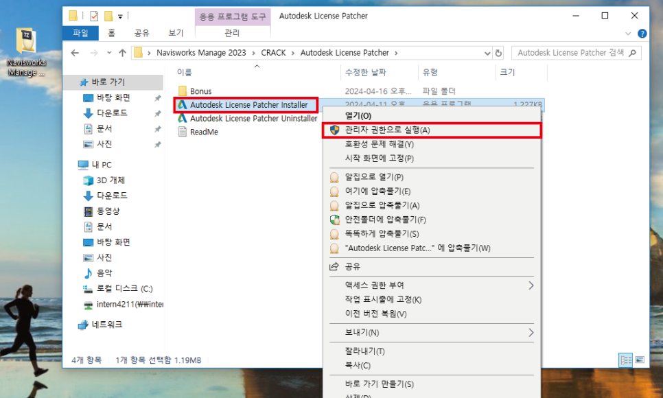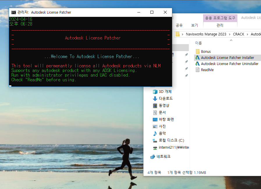 크랙폴더내에 'Autodesk License Patcher Installer' 를
