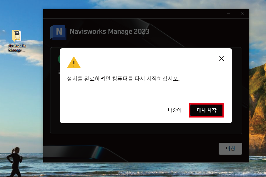컴퓨터 재부팅후, 나비웍스 크랙폴더로