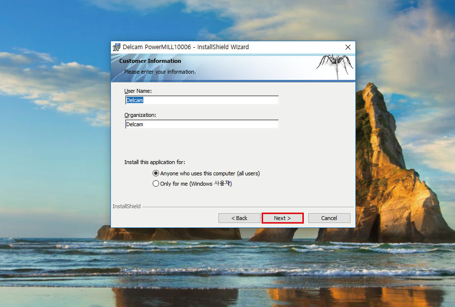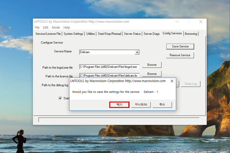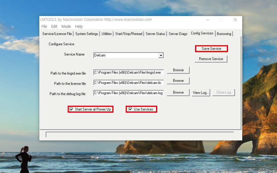 'Service Name' 에는 'Delcam' 이라고