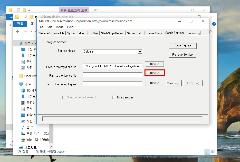 'Browse' 버튼을 클릭하여 'lmgrd' 파일을