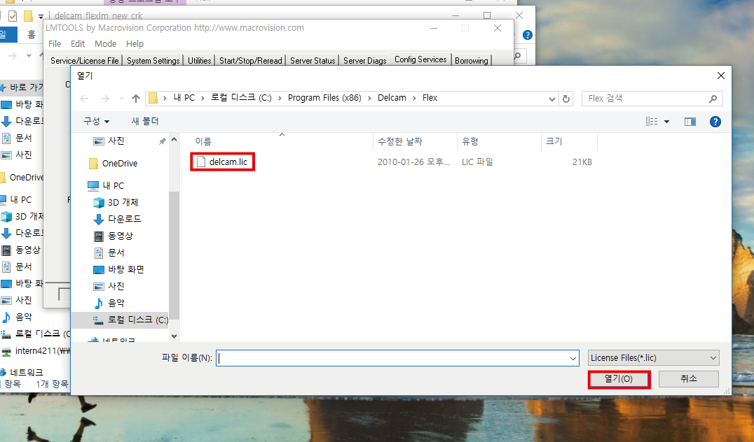 delcam.Lic 파일을 선택하여