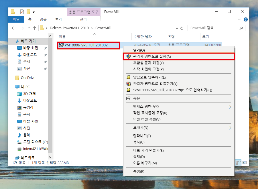 관리자 권한으로 실행시켜줍니다.
