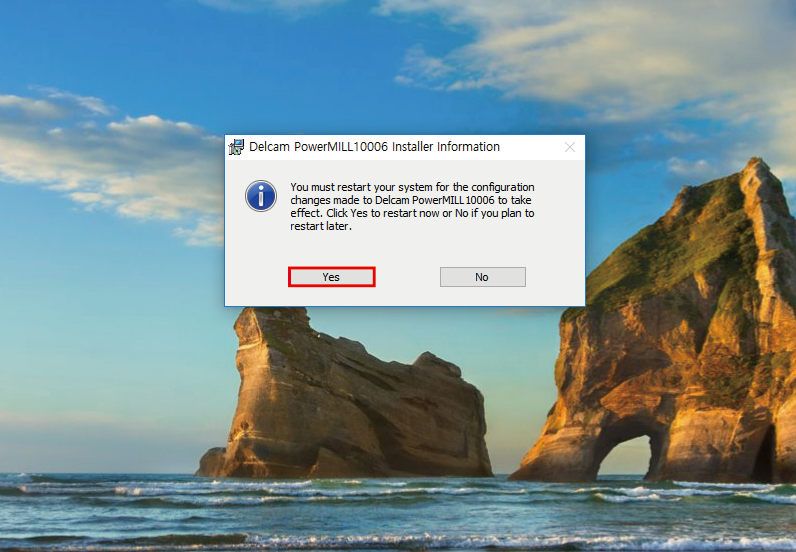 'Yes' 클릭하여 재부팅합니다.