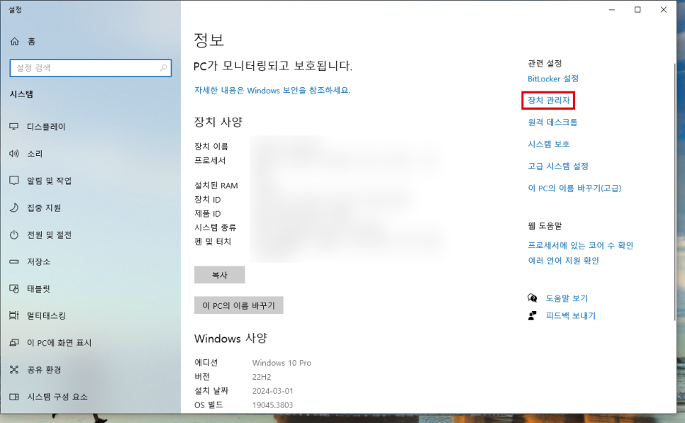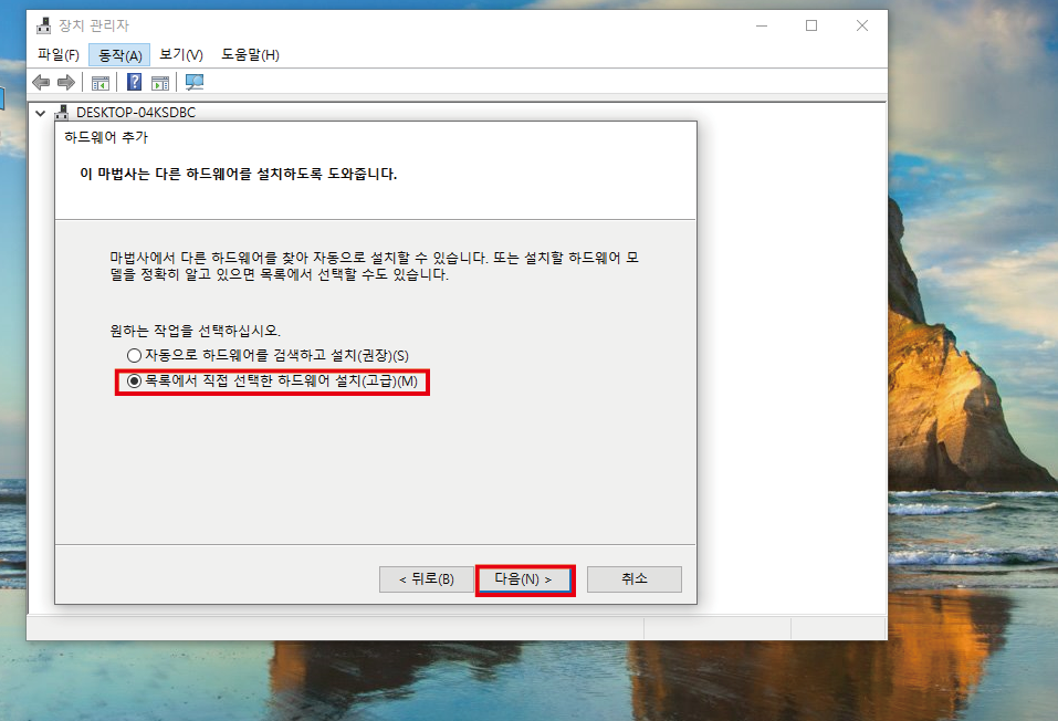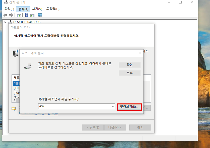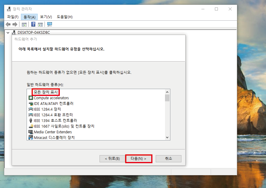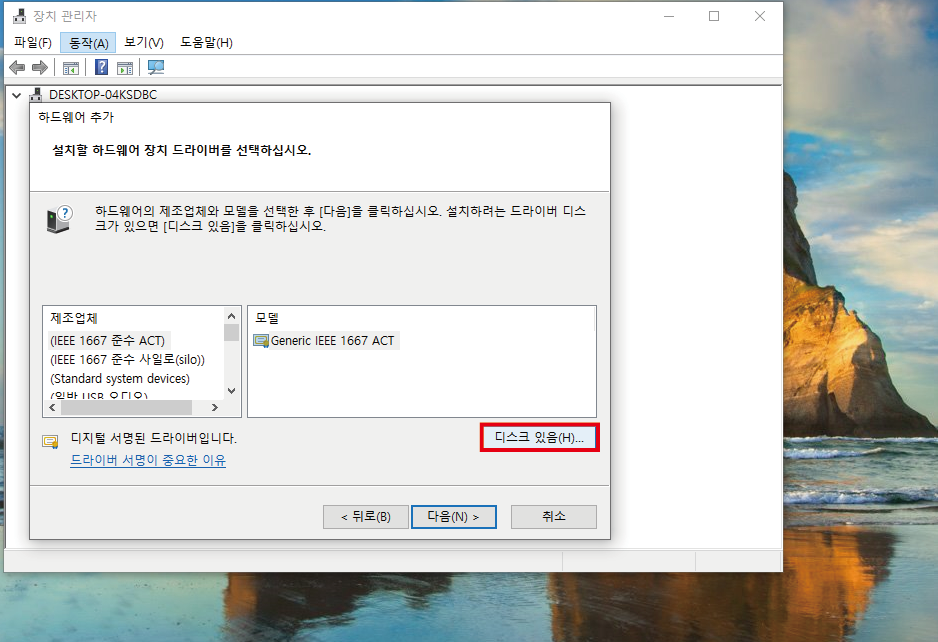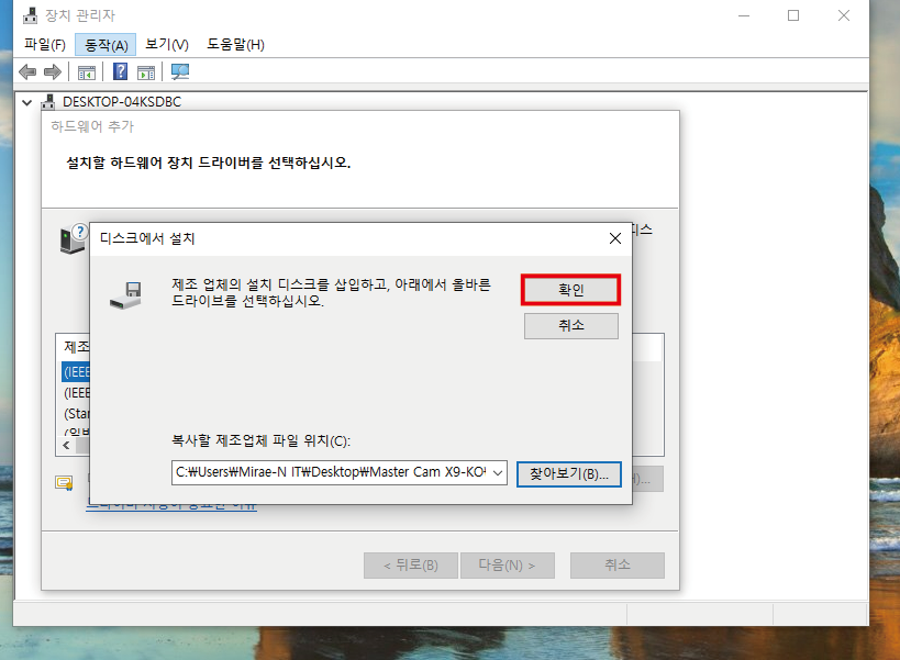 드라이버가 정상적으로 설치되어있는지 확인해봅니다.