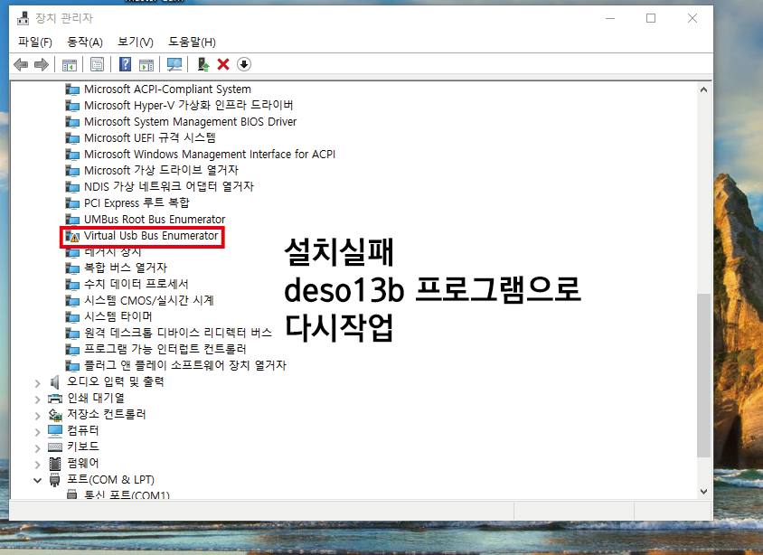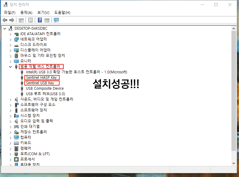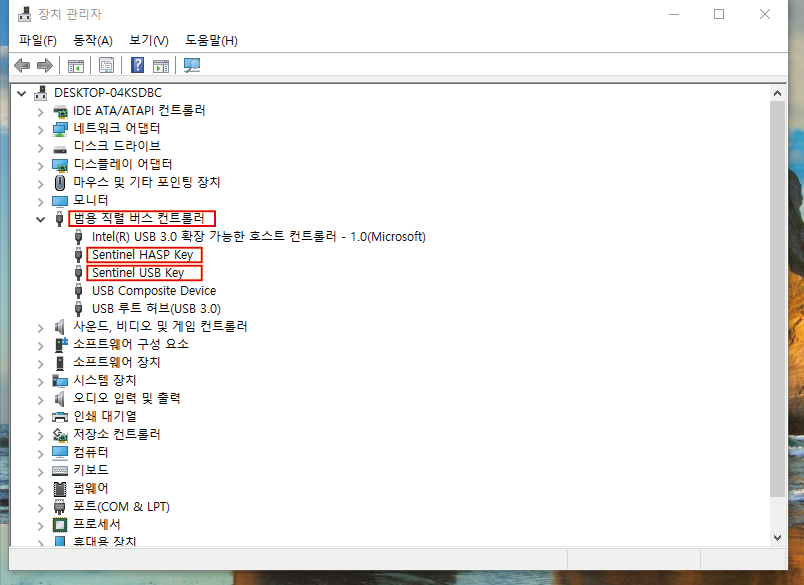 장치관리자에 들어가면 '범용 직력버스컨트롤러'