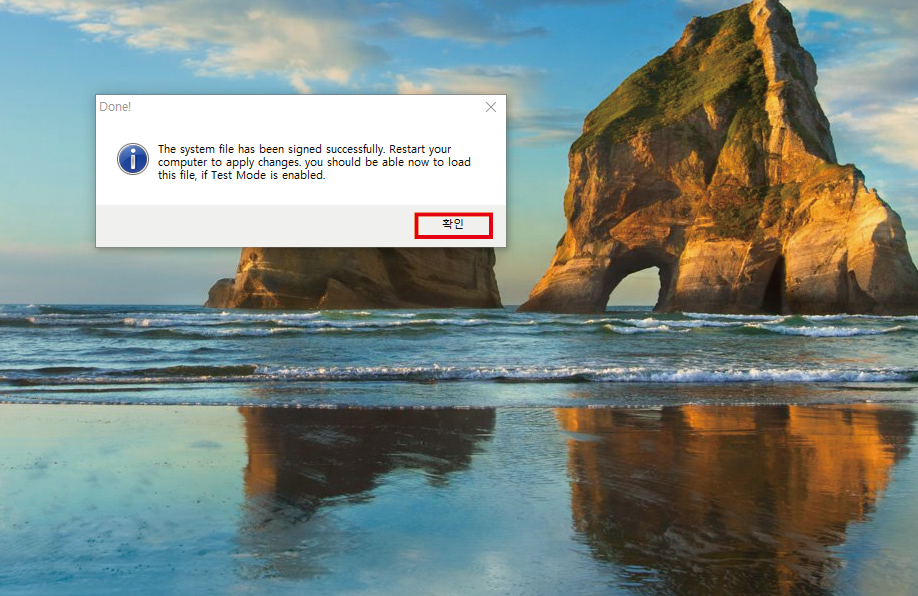 서명을 다시하신후, 재부팅하셔야 합니다.