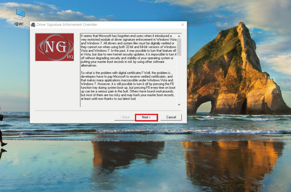 윈도우를 서명적용미사용으로 부팅한 이유입니다.