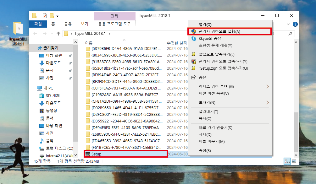 'Setup' 파일을 관리자 권한으로 실행시킵니다.