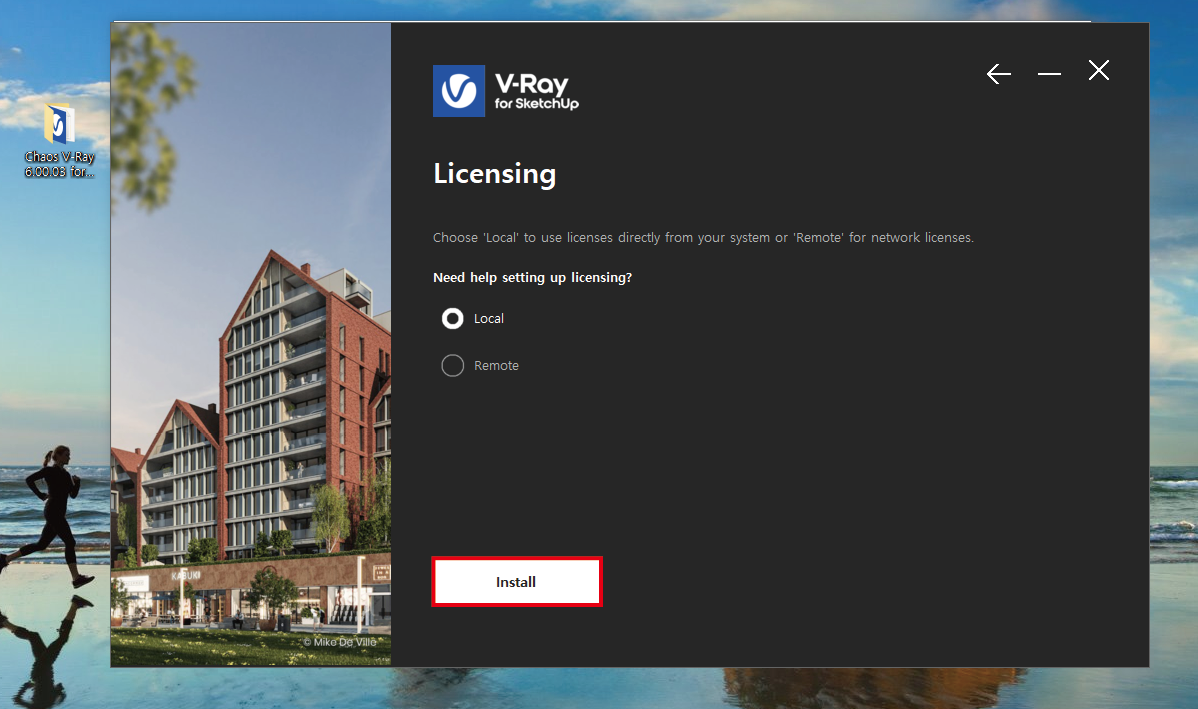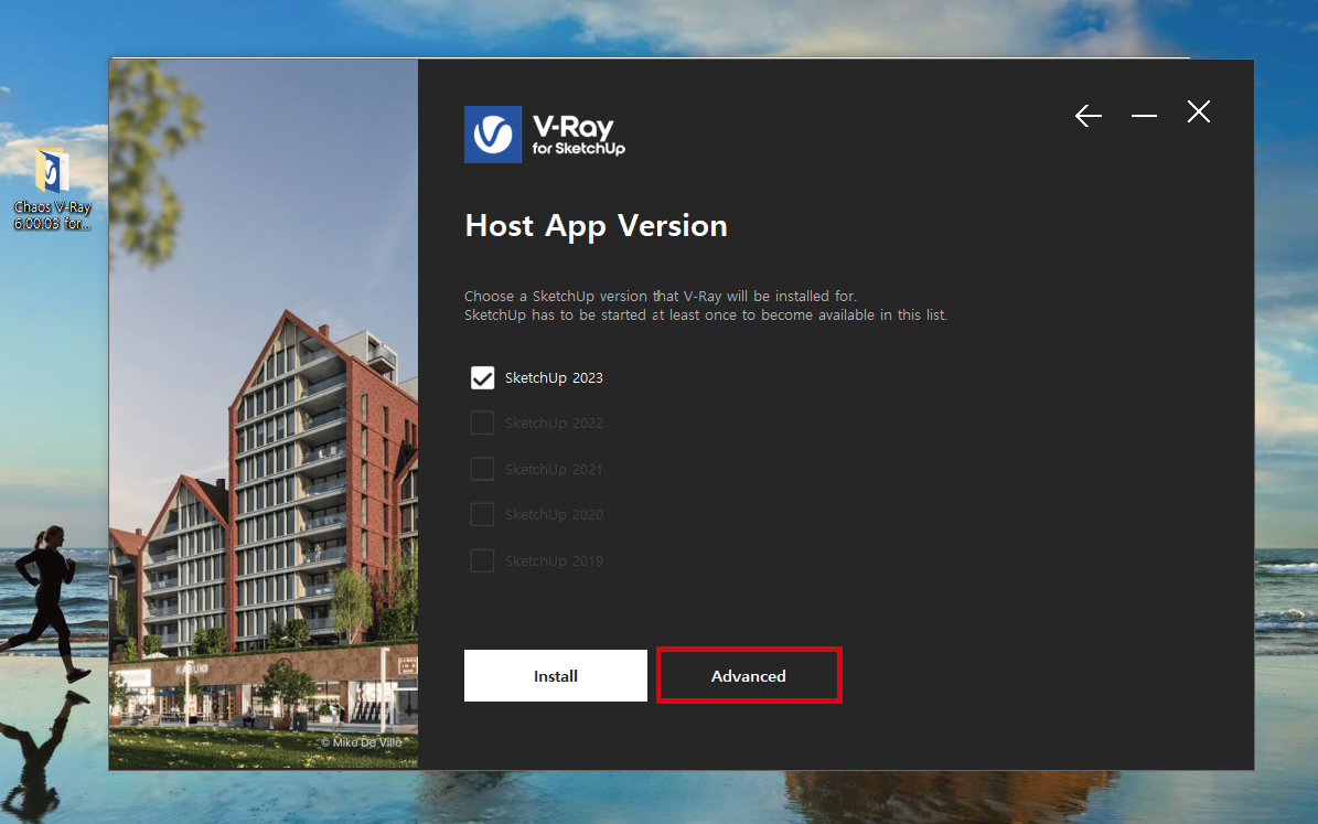 스케치업 버전에 맞게 브이레이를 인스톨