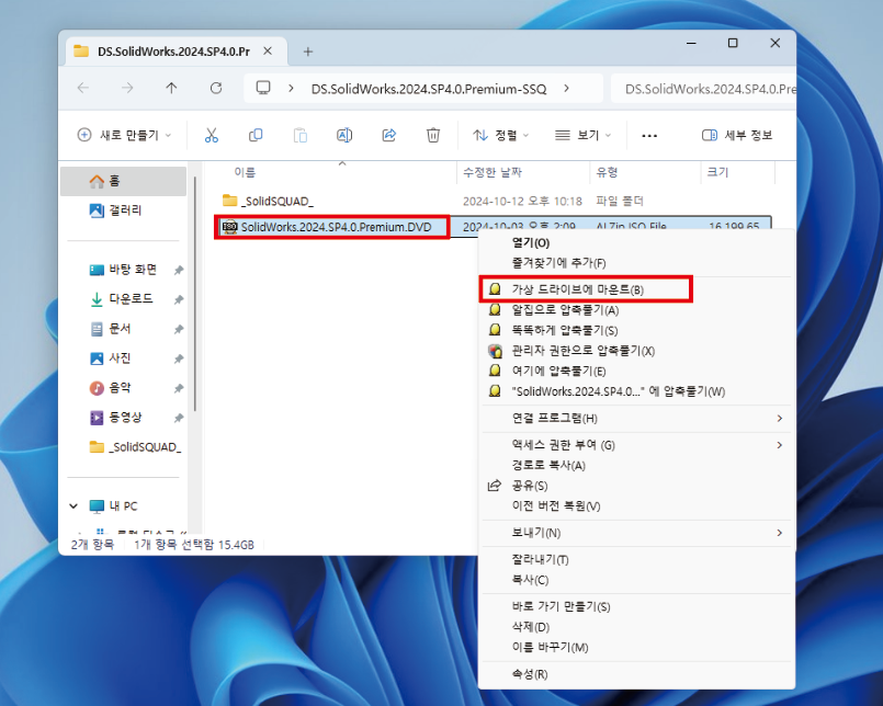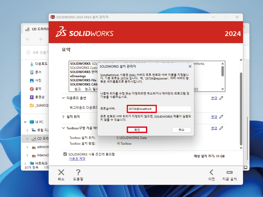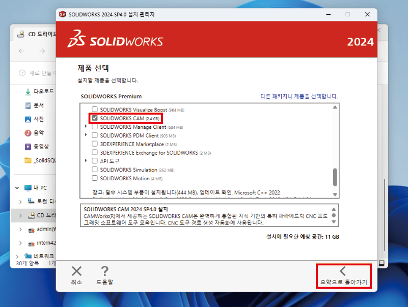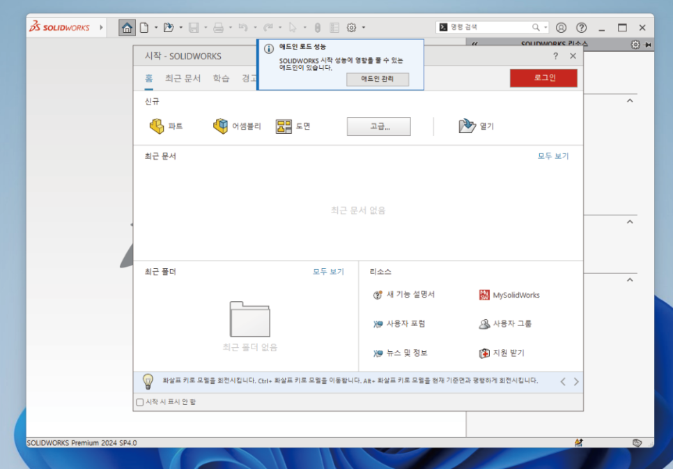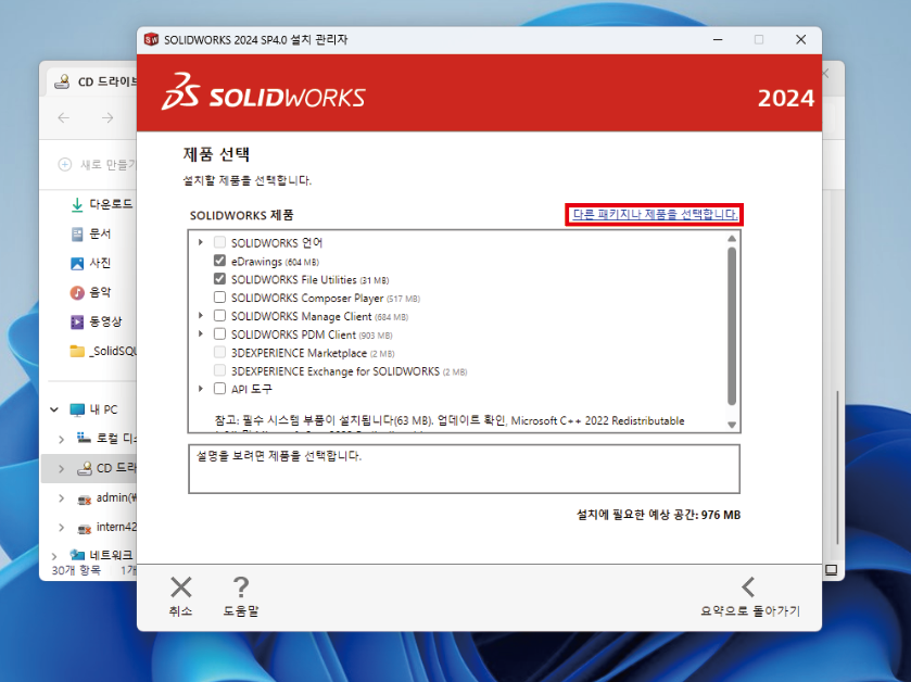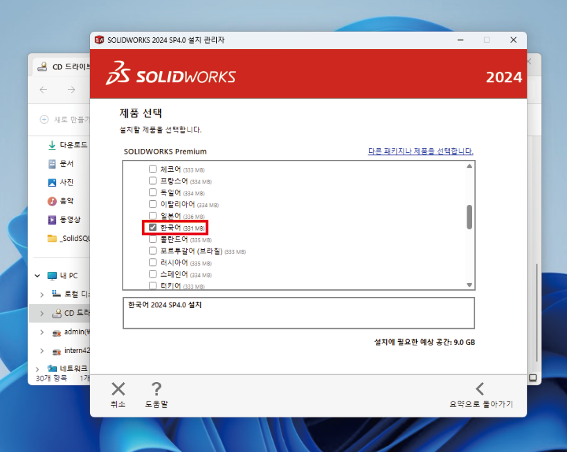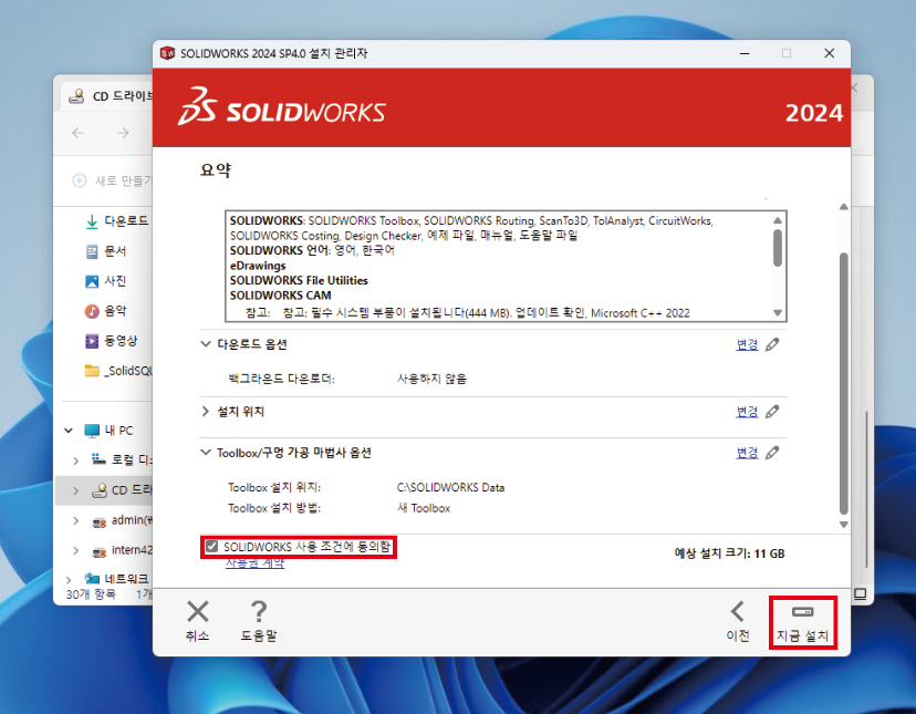 솔리드웍스 2024 설치를 시작해 보겠습니다.