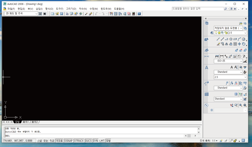 캐드2008을 실행하면, 위와같은 창이뜹니다.