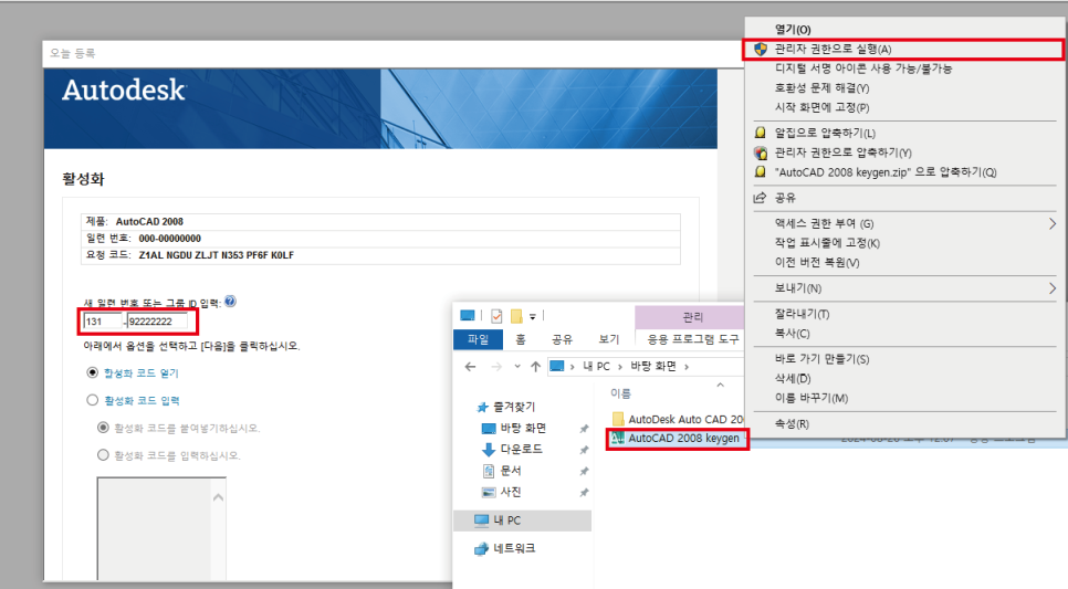 캐드 2008을 윈도우10 또는 11에서 사용할수있게