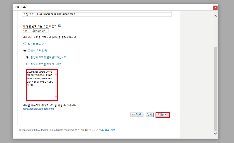 활성화 코드 입력란에