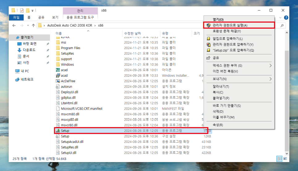 "Setup" 파일을 관리자권한으로 실행합니다.