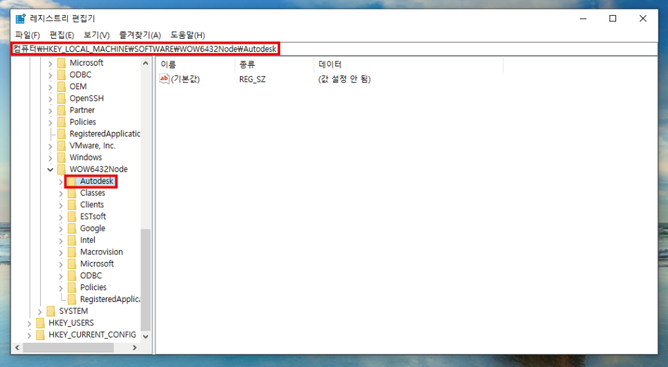 "컴퓨터\HKEY_LOCAL_MACHINE\SOFTWARE\WOW6432Node\Autodesk"