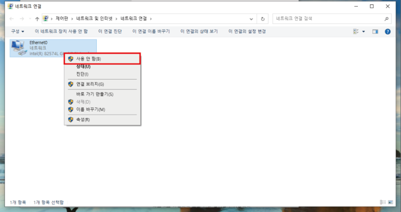 랜선을 뽑으셔도 되며, 네트워크 어댑터를