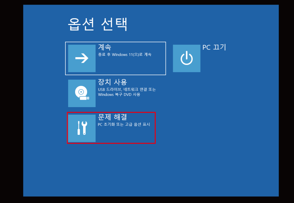 고급시작옵션의 "지금다시시작"을