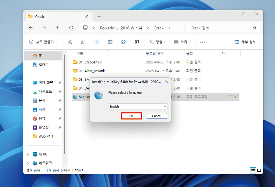 "OK" 클릭합니다.