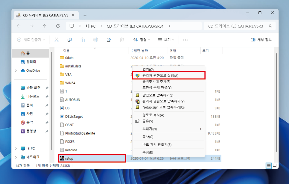 파일을 "관리자 권한으로 실행" 시켜 줍니다.