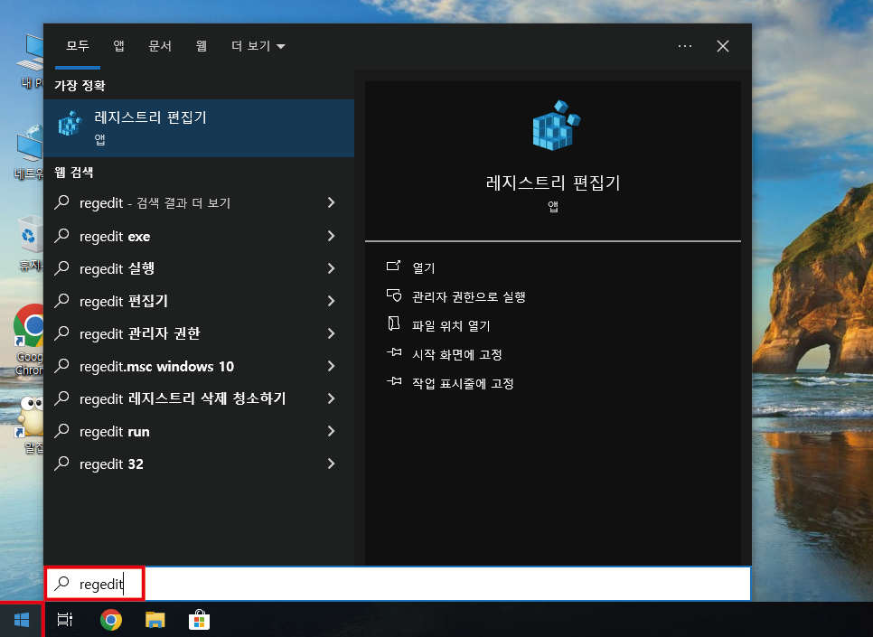 "Regedit" 실행해줍니다.