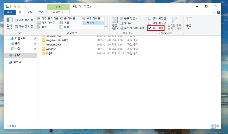 숨김폴더의 파일을 볼수있게 "숨김항목"