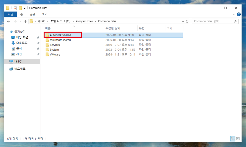 C 드라이브내에 "Autodesk" 파일이