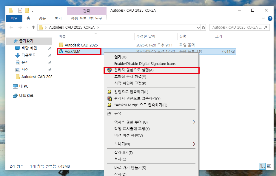 "AdskLNM" 파일을 관리자 권한으로